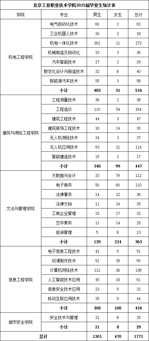 | 专业名称 | 安置或实习人数 | 男女比例 | 安置或实习时间 |