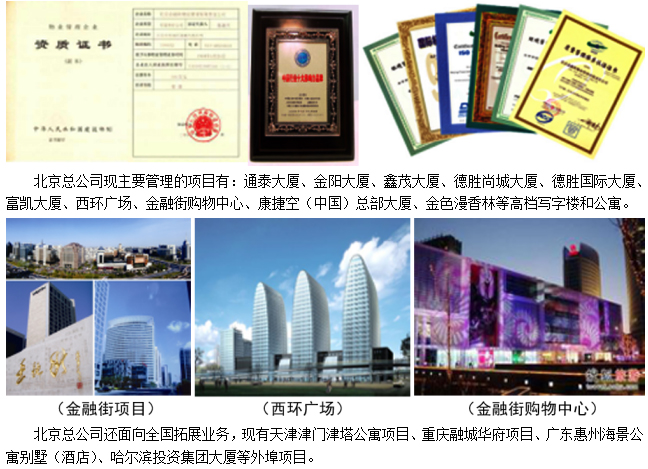 北京金融街物业管理有限责任公司成立于1994年5月,隶属于北京金融街投资(集团)有限公司(系国有独资的大型资产运营管理企业集团)。
