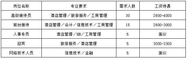 | 岗位名称 | 专业要求 | 需要人数 | 男女比例 | 招聘时间 |
