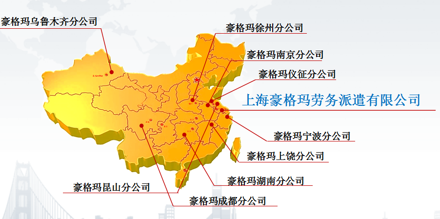 豪格玛(上海)有限公司为其全资子公司,经由上海市人事局、劳动和社会保障局、工商管理局登记批准成立的一家专业从事劳务派遣、建筑劳务外包、生产、代加工业务外包、企业管理、投资管理、餐饮管理、仓储运输、冷链物流、政策咨询及择业指导的具有独立法人资格的服务型机构。先后设立了下属上海松江公司、欧纳科(上海)实业有限公司、豪格玛上海闵行公司、上海嘉定公司、江苏南京分公司、江苏仪征分公司、浙江宁波分公司、江西上饶分公司、湖北武汉分公司、湖北黄冈办事处、湖北十堰办事处、安徽合肥办事处、安徽六安办事处等,并逐步在全国扩建多家关系点及办事处。本公司引用国内外优秀企业的管理模式和超前的服务理念,拥有一批专业从事人力资源服务并具有丰富工作经验和劳动保障及法律法规知识的从业人员 。依靠长三角地区优越的地理环境、丰富的人才资源,规范成熟的市场运作体系和超前的服务意识,我公司将打造出这片热土上规模较大、知名度较高的专业从事大.中专职高、技校等毕业生就业推荐工作及国内人力资源安置工作的劳务派遣机构。