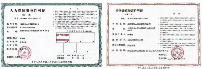 本公司是经上海市人力资源和社会保障局批准,成立于2010年6月25日,注册资金900万。主营业务:劳务派遣,职业中介,人力资源服务外包、生产工段外包、后勤管理服务、保洁绿化、餐饮企业管理等。