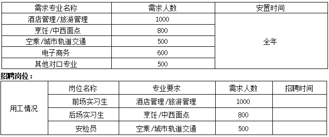 | 专业名称 | 安置或实习人数 | 男女比例 | 安置或实习时间 | |