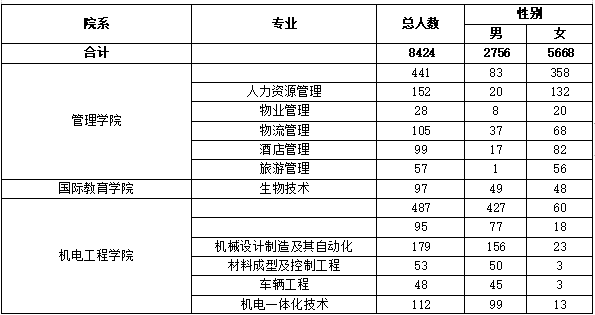 专业名称 安置或实习人数 男女比例 安置或实习时间