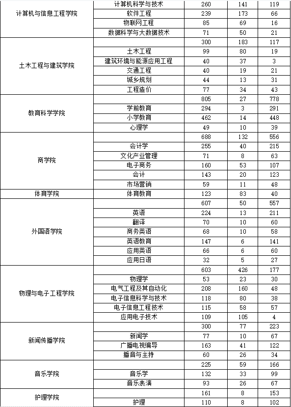 截至2021年5月,学校占地面积2158亩,校舍面积近77万平方米,教学科研仪器设备总值约3.95亿元,图书馆馆藏纸质图书202万册、电子图书160万余种、中外文报刊1520余种、各种数据库50种;设有24个二级学院、18个科研机构,有67个本科专业、21个专科专业;有教职工1800人,专任教师1376人,全日制本专科在校生2.63万余人,成教生1.7万余人。