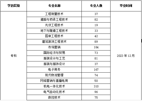 | 专业名称 | 安置或实习人数 | 男女比例 | 安置或实习时间 |