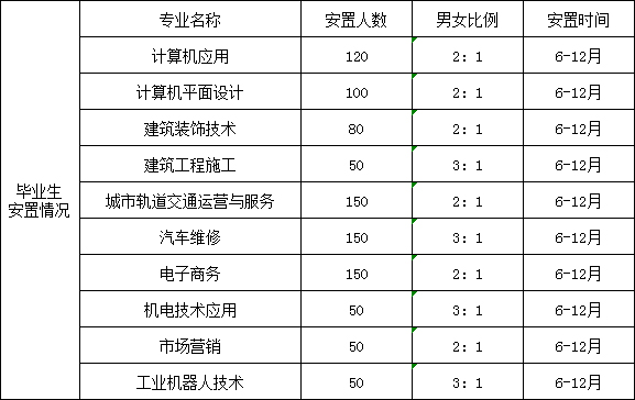 | 专业名称 | 安置或实习人数 | 男女比例 | 安置或实习时间 |