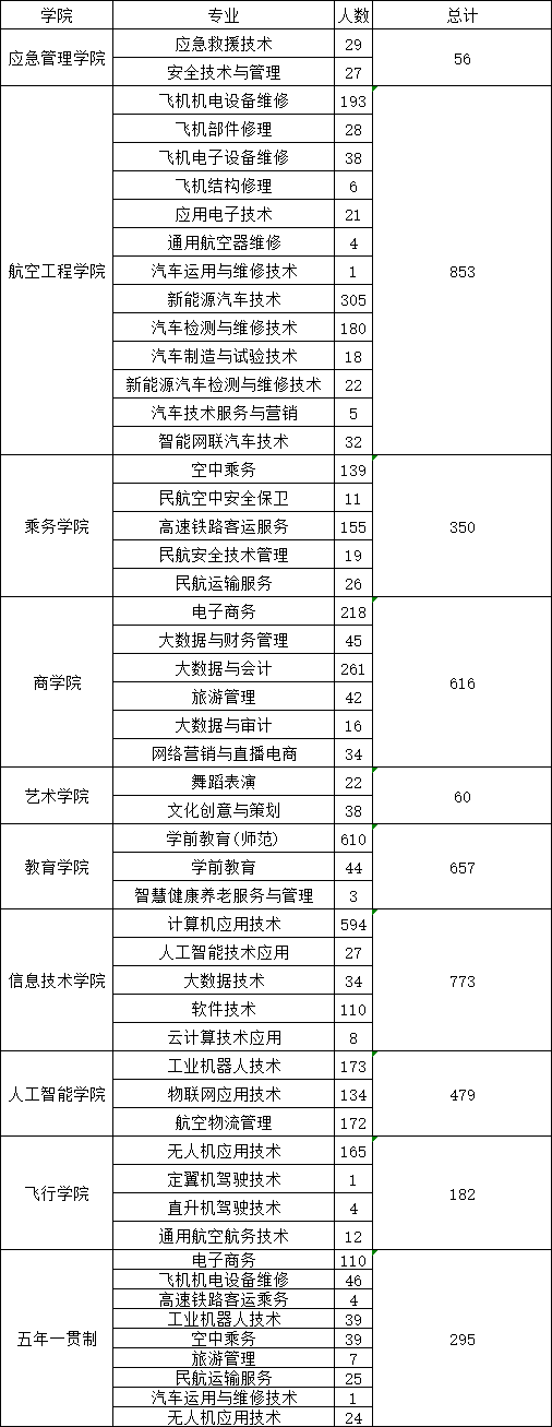 学院现设有航空工程学院、航空管理学院、飞行学院、人工智能学院、教育学院等9个二级学院,开设专业50个,形成了以航空专业为特色,工、管、经、教多学科协调发展的专业群。