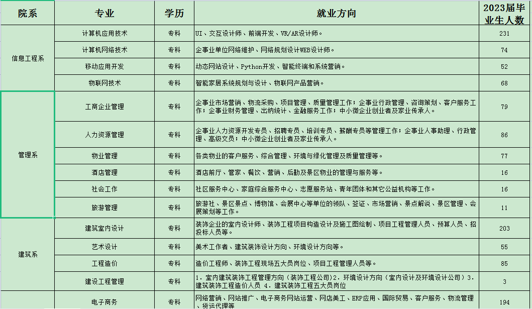 学院始终贯彻“一把手”工程,确保就业质量。并建立了完善的毕业生就业市场和就业服务体系,每年举办多场招聘会,邀请数百家各类大中型企业到学院进行现场招聘。通过校园网、QQ群、微信、宣传栏等平台实时发布招聘信息,并根据学生的个性特点,实际情况提供个性化、针对性的服务,搭建全方位的就业平台。