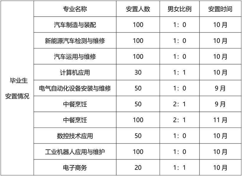 | 专业名称 | 安置或实习人数 | 男女比例 | 安置或实习时间 |