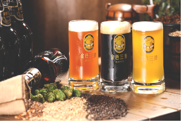 金色三麦现酿啤酒,均以100%麦芽萃取麦汁酿造,熟成后的啤酒绝不经过滤与加热处理,亦称为「原浆纯啤酒」使天然的活菌酵母与麦芽营养能保存下来,完整呈现鲜酿啤酒的风味。