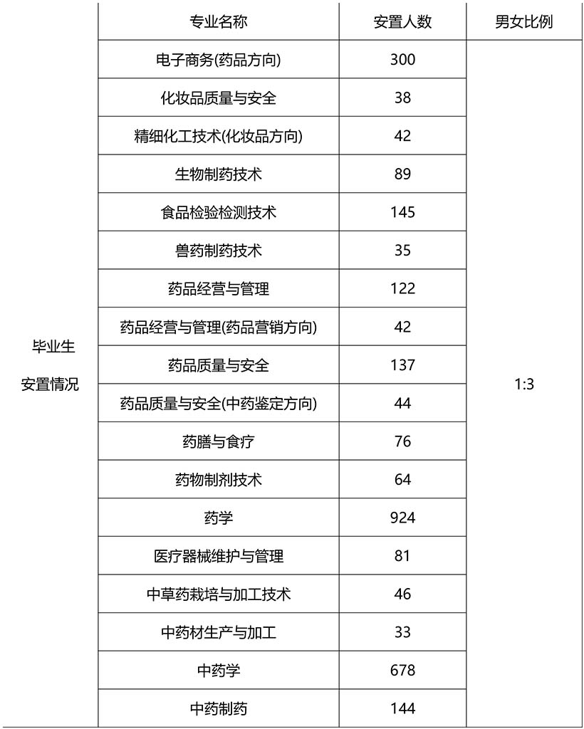 专业名称 安置或实习人数 男女比例 安置或实习时间