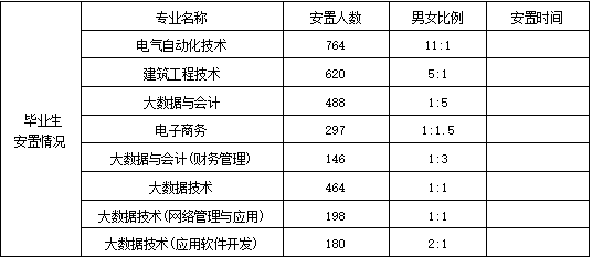 | 专业名称 | 安置或实习人数 | 男女比例 | 安置或实习时间 |
