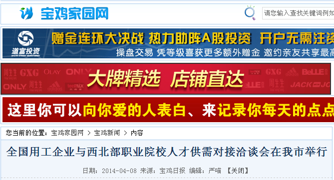 宝鸡家园网报道我公司全国用工企业与西北部职业院校人才供需对接洽谈会