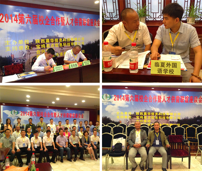 2014年6月12日,临夏外国语学校常务副校长丁继光、校办室主任马明吉应邀参加了在甘肃兰州举行的2014第六届校企合作人才供需联谊洽谈会。此次联谊会是由陕西晨华信息科技有限公司主办,宝鸡易点科技有限公司及浙江温州和兴电子集团赞助举办的。来自全国各地二十三家大型企业负责人和十一所职业院校领导参加了洽谈会。