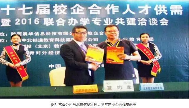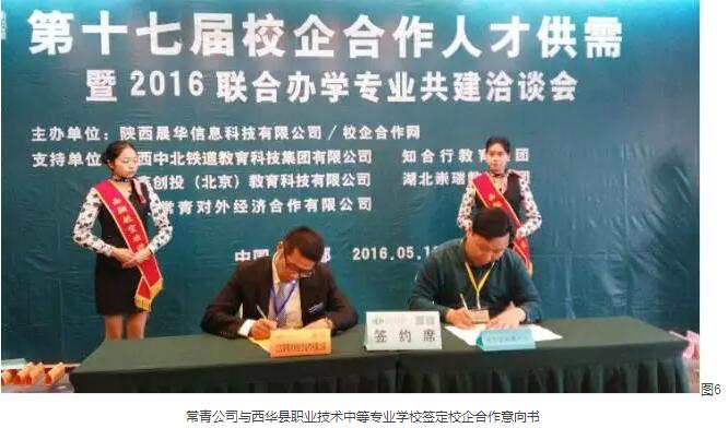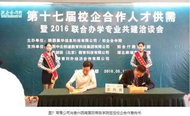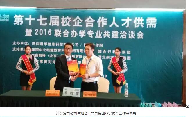 2016年5月19日,“第十七届校企合作人才供需暨联合办学专业共建洽谈会” 在四川省成都市皓天国泰大饭店胜利召开。江苏常青公司应校企合作网、陕西晨华信息科技有限公司主办单位邀请出席参加了会议。陕西中北铁道教育科技集团有限公司、知合行教育集团、中鑫创投(北京)教育科技有限公司、湖北崇瑞教育集团等公司参加了会议并与相关院校签订了校企合作意向书。