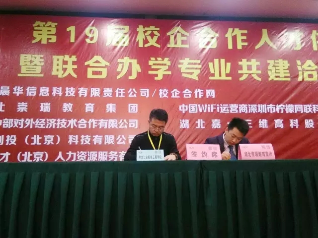 会后,湖北崇瑞教育集团总经理瞿浩与东北某高校领导签订了“校企合作、专业共建”意向协议书。