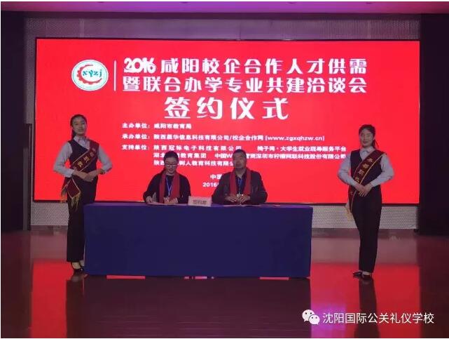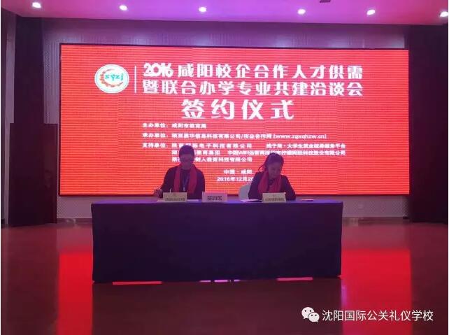 2016陕西·咸阳校企合作人才供需暨联合办学专业共建洽谈会12月20日在陕西咸阳召开,沈阳国际公关礼仪学校校长安静、副校长李超应邀参会。