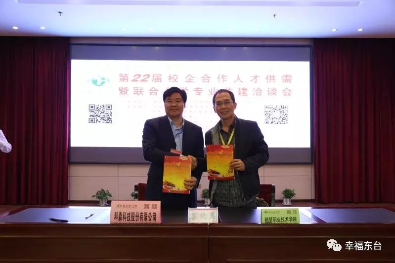 洽谈会上,科森公司总经理吴惠明先生代表东台公司作了专题发言,向参会嘉宾介绍了我市的投资环境、行业发展定位、企业发展现状以及人才用工需求。经过洽谈科森公司与南昌工学院、鹤壁职业技术学院现场达成合作意向,并签订合作意向协议书。领胜公司除与南昌工学院签订合作意向协议书外,与部分职技院校达成口头合作协议。