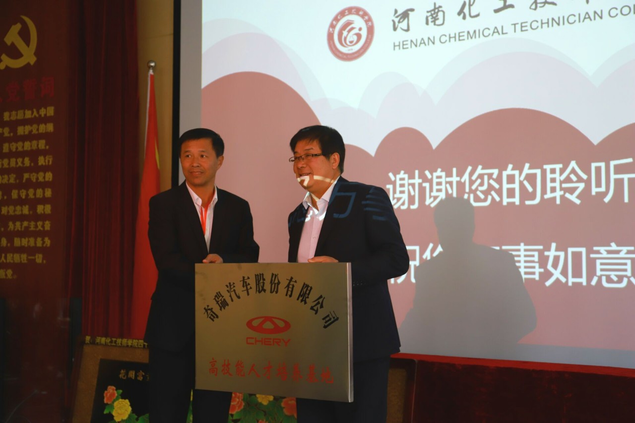 随后,进行了高技能人才培养基地授牌仪式和企业捐赠仪式。奇瑞汽车股份有限公司、宝舜科技股份有限公司,向学院授牌“高技能人才培训基地”;