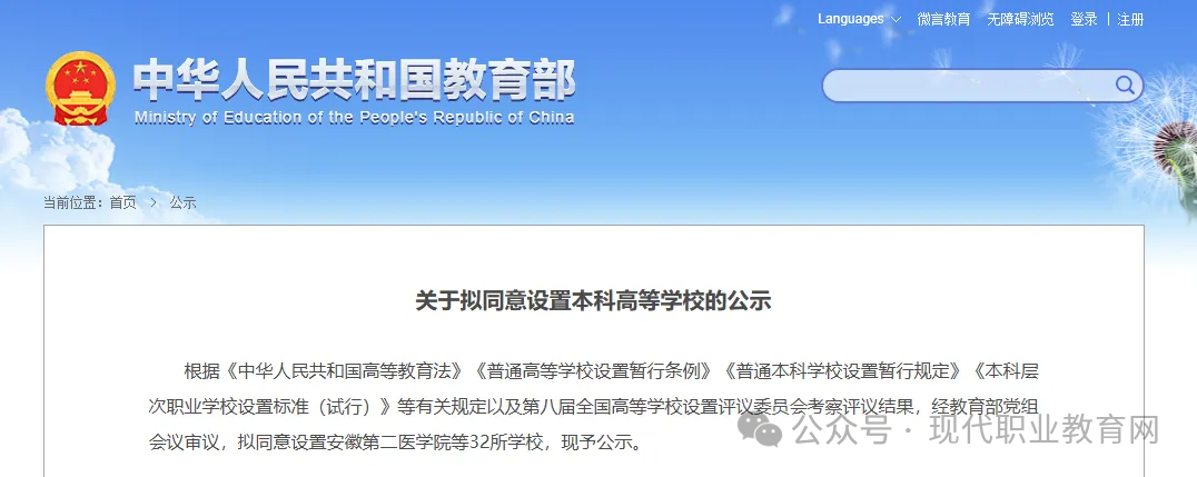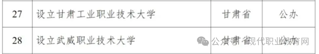 2025年5月22日,教育部发布关于拟同意设置本科高等学校的公示,其中,拟同意设置甘肃工业职业技术大学。