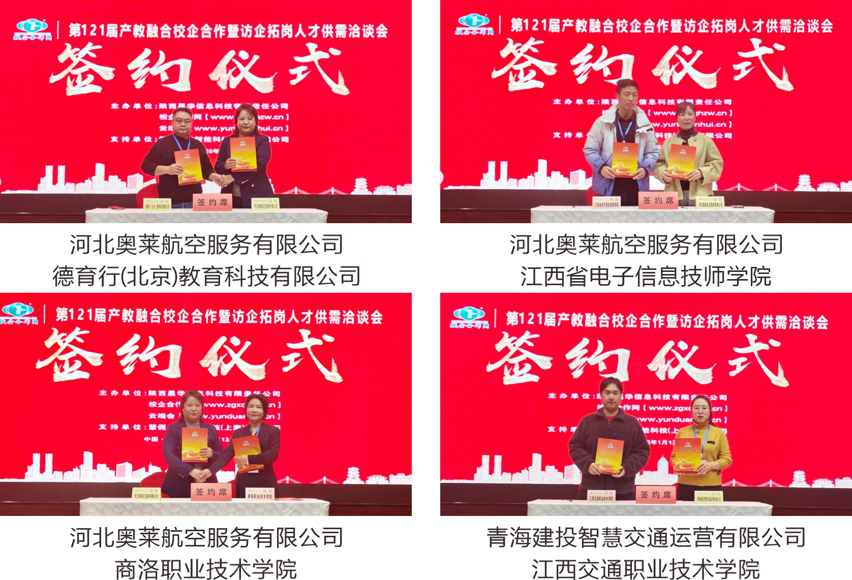 “一对一” 精准洽谈环节气氛热烈,成果丰硕喜人。校企双方围绕产业学院共建、学生实习就业安置等关键议题,展开了深入洽谈。洽谈现场,双方互换资料、互留联系方式,坦诚沟通。江西交通职业技术学院、江西水利职业学院分别与青海建投智慧交通运营有限公司,商洛职业技术学院与河北奥莱航空服务有限公司、众合明锐(北京)科技有限公司,满洲里俄语职业学院与玖芾(北京)教育科技有限公司、昆山光辉旗帜企业管理有限公司,河北奥莱航空服务有限公司与德育行(北京)教育科技有限公司等近 20 对校企达成初步合作意向,分批登台,签署合作协议。