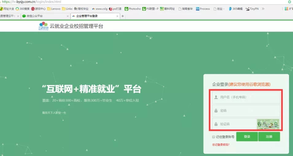 1、登录云校招单位后台https://hr.bysjy.com.cn,输入云校招单位账号密码及验证码,点击登录进入单位操作后台