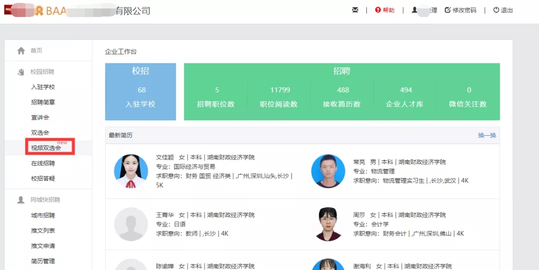 2、进入云校招单位后台后,点击视频双选会进入