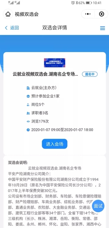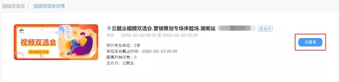 3、选择需要参加的视频双选会场次,了解详情