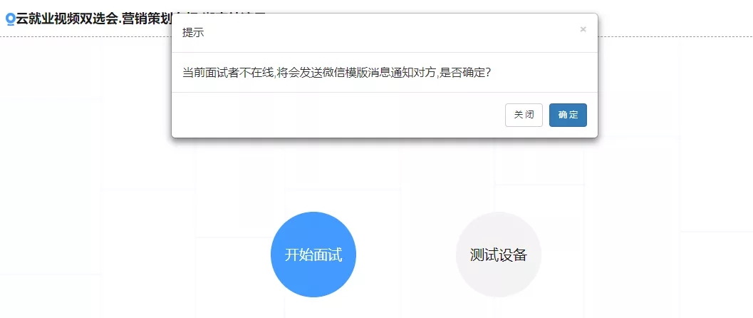 针对暂时不在线者,单位可选择发送微信模板消息给到求职者点击面试邀请链接,通知其尽快上线进行视频面试