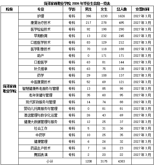 | 专业名称 | 安置或实习人数 | 男女比例 | 安置或实习时间 |