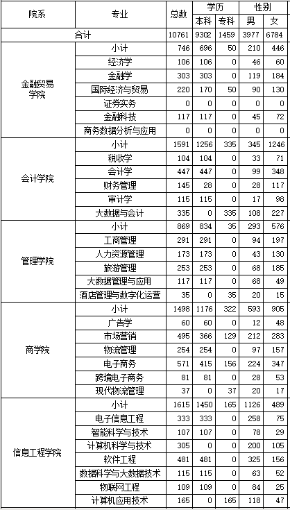 | 专业名称 | 安置或实习人数 | 男女比例 | 安置或实习时间 |