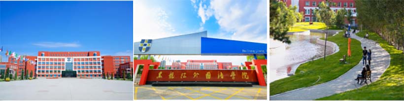 办学条件优良。学校坐落于“冰城”哈尔滨市松北区,校园占地面积65.48万平方米,校舍建筑面积24.90万平方米,教学行政用房面积11.76万平方米。现有教学科研仪器设备总值4843.90万元,固定资产总值64485.32万元。校内体育馆、游泳馆、健身中心和美术馆、音乐厅等文体设施齐全,建成华为国内首例二代全光网络,实现教学区、公共区和运动区无线网络全覆盖。在已有2.84万平方米实践教学中心基础上,又在深圳市龙岗区(坂田)新建1.56万平方米实践教学中心。厚实文化底蕴。学校在创业、转型、发展过程中,始终坚守“给学生和社会最需要的”办学理念,秉承“办学以教师为本、教学以学生为本”的办学指导思想,完成了不同时期的使命任务,铸造了“敢为人先、执着专注、兼容开放、自强不息”的龙外精神和“信、搏、融、和”的校风。从学生实际出发,立足学生全面发展,逐步形成“严管厚爱、博学善导”的教风和“勤学、善思、力行、创新”的学风。