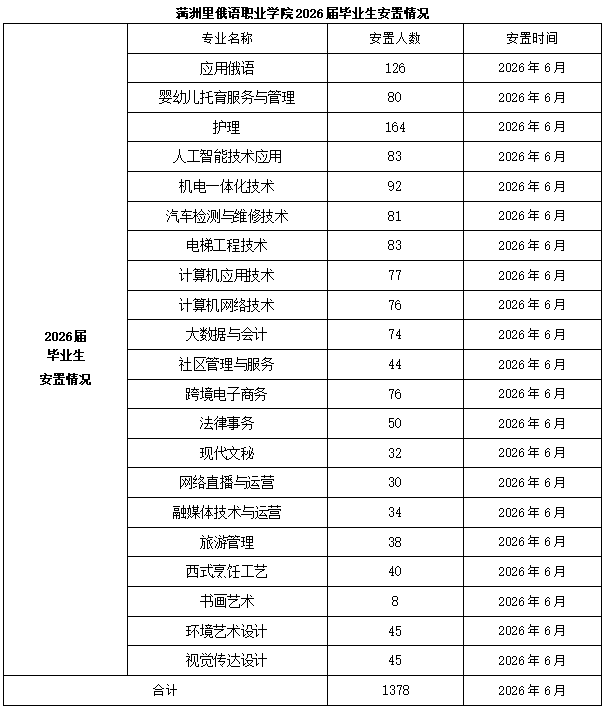 | 专业名称 | 安置或实习人数 | 男女比例 | 安置或实习时间 |
