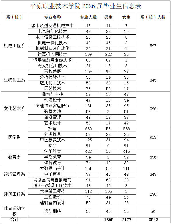 附件:平凉职业技术学院2026届毕业生信息表